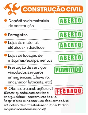 O texto do novo decreto é semelhante aos textos publicados nos dias 17 e 26 de março, quando parte significativa das atividades comerciais e industriais foram suspensas no Estado. A maior novidade é o revezamento entre 14 dias de fechamento com 14 dias de funcionamento.